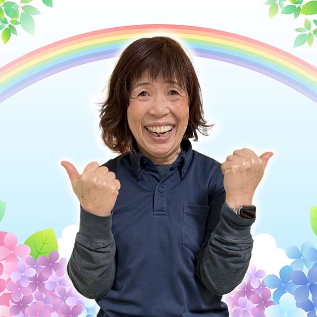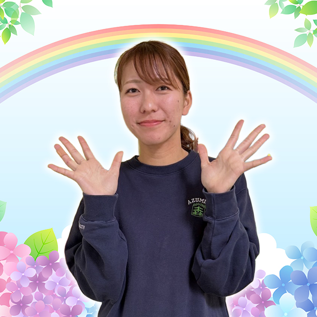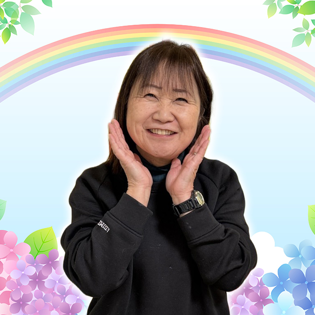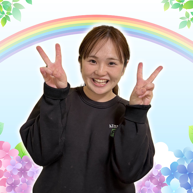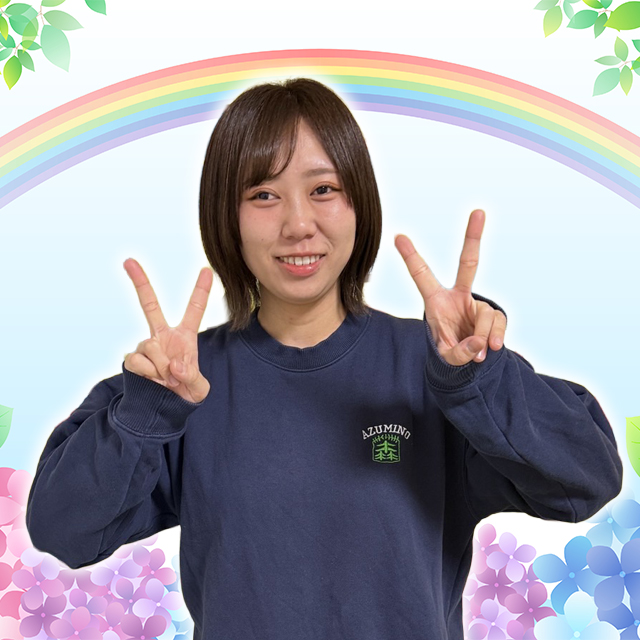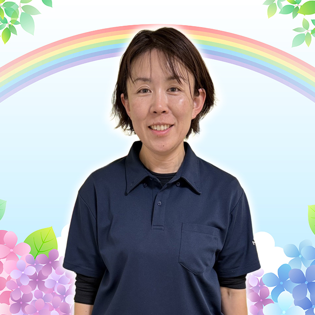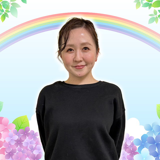 とても明るく、子供たちといつもニコニコ過ごしています! お話が上手で、笑顔の素敵な先生です。
